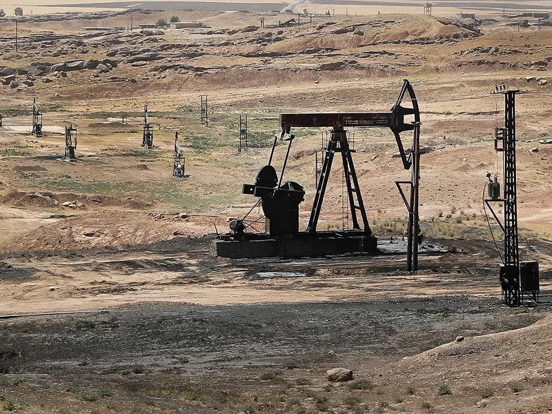 Một giềng dầu tại mỏ dầu al-Omar ở miền đông Syria (đang nằm dưới sự kiểm soát của Mỹ và các lực lượng được phương Tây hậu thuẫn). Ảnh: AP