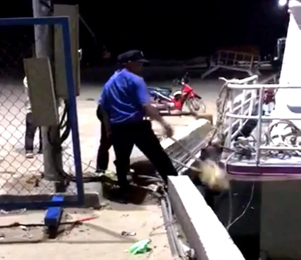 Nhân viên cảng Phan Thiết cắt dây neo tàu Hưng Phát 26