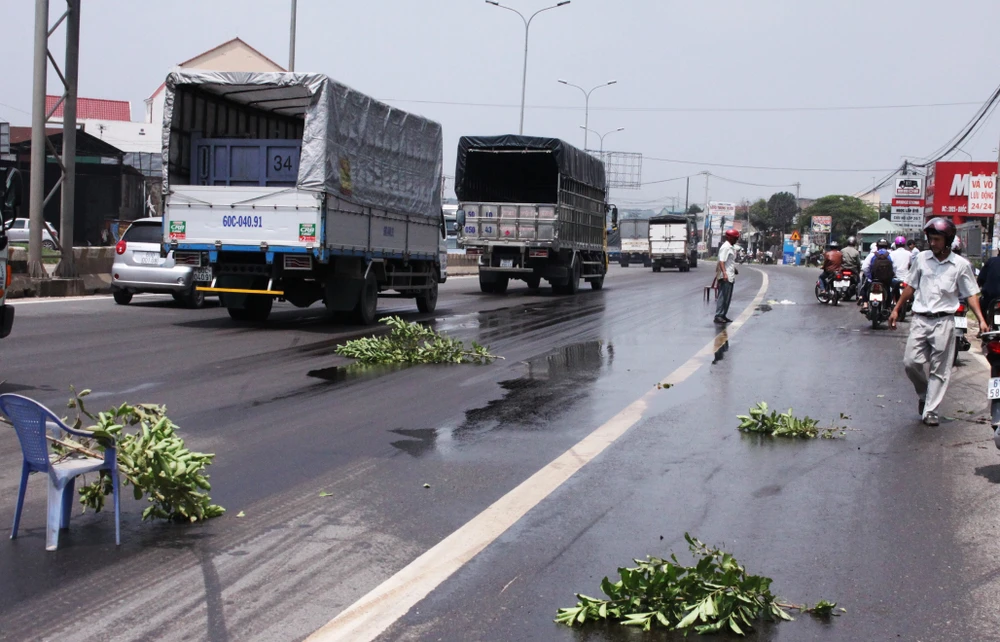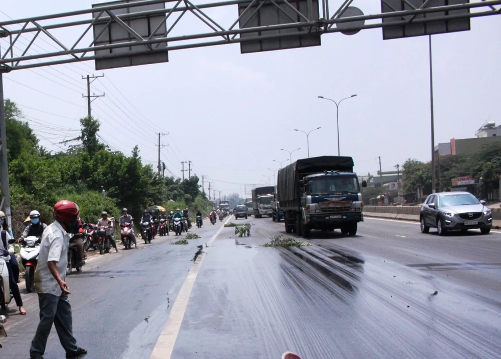 Khoảng 10 giờ 30 ngày 8-10, các phương tiện xe máy khi lưu thông qua đoạn quốc lộ 51, thuộc ấp Hương Phước, xã Phước Tân, TP Biên Hòa (Đồng Nai) bất ngờ bị té ngã hàng loạt. Người điều khiển các phương tiện bị trầy xước chân tay, quần áo lấm lem dầu nhớt.