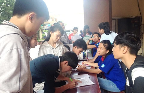 Thí sinh rút hồ sơ và điều chỉnh nguyện vọng tại Trường ĐH KHXH&NV TP.HCM. Ảnh: P.ĐIỀN