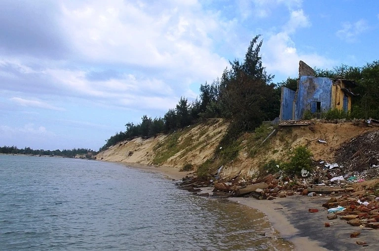 Bờ biển Tam Hải sạt lở nghiêm trọng. Ảnh HT