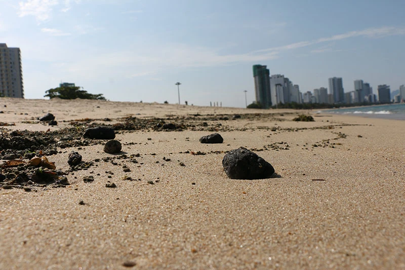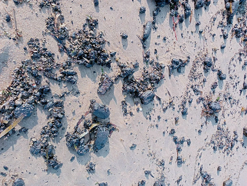 Dầu vón cục nằm khắp nơi trên bờ biển Nha Trang. Ảnh: LX