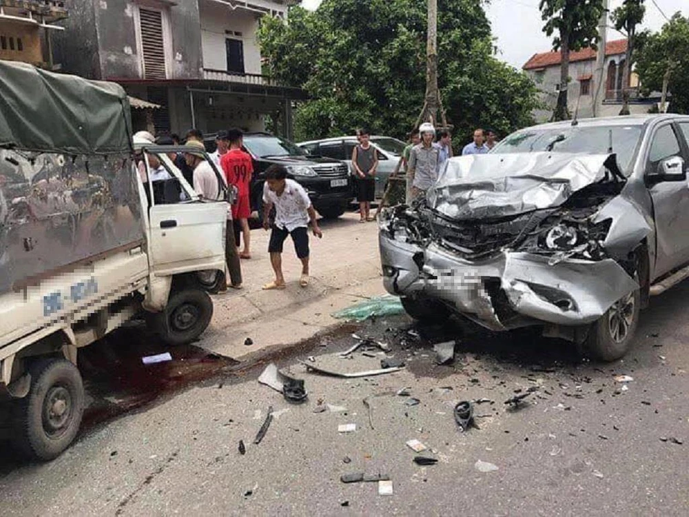 Vụ va chạm mạnh khiến tài xế xe tải tử vong tại chỗ, hai người trên xe bán tải cũng bị thương, được người dân đưa đi cấp cứu. Tại hiện trường, nhiều mảnh vỡ vương vãi khắp nơi, phần đầu hai chiếc xe bị hư hỏng nghiêm trọng.