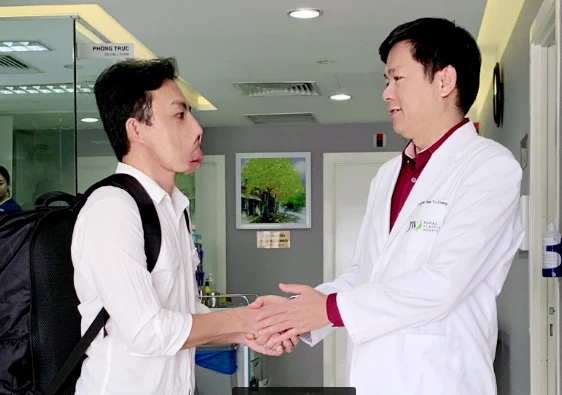 Gương mặt anh Mến (trái) gần như bình thường sau điều trị. Ảnh: BVCC