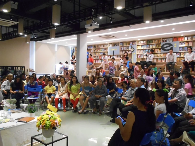 Đó là những câu hỏi được nhiều ông bố, bà mẹ đặt ra trong buổi giao lưu với nhà thơ - dịch giả Nguyễn Phan Quế Mai vào sáng nay (14-8) tại Trung tâm sách Kim Đồng (quận 1, TP.HCM). Chương trình do Hội quán Các bà mẹ phối hợp với NXB Kim Đồng tổ chức với chủ đề chính “Những bậc thang bước vào trang sách”.