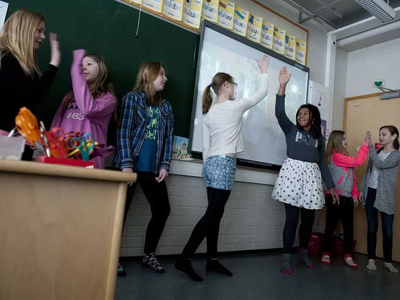 Học sinh tiểu học tại Phần Lan thuyết trình bằng cách hát rap trong một tiết học. Ảnh: INDEPENDENT