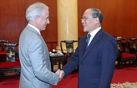 Chủ tịch Quốc hội Nguyễn Sinh Hùng tiếp thượng nghị sĩ Bob Corker, thành viên cao cấp của Ủy ban Đối ngoại Thượng nghị viện Hoa Kỳ. Ảnh: TTXVN