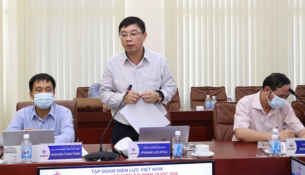 Tổng giám đốc EVNNPT Phạm Lê Phú báo cáo tình hình triển khai dự án.