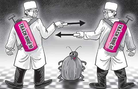 Theo vị cán bộ phường, sau khi nhận được lời “cầu cứu” thì có một cuộc họp đột xuất giữa cơ quan y tế dự phòng và thú y để xác định cơ quan nào có trách nhiệm. Ngành y tế dự phòng thì cho rằng ve chó thuộc thẩm quyền xử lý của cơ quan thú y. Ngành thú y lại quả quyết nơi này chỉ xử lý ve sống bám trên con chó. Còn khi ve chó sống ngoài môi trường tự nhiên thì thuộc trách nhiệm xử lý của cơ quan y tế dự phòng.