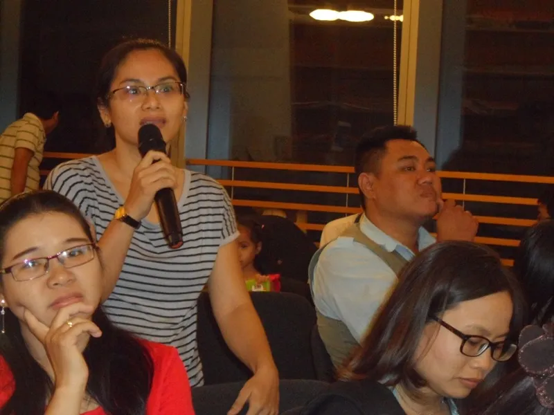 Các phụ huynh bận rộn đem cả con nhỏ đến buổi chia sẻ _Ảnh: Nguyễn Trà