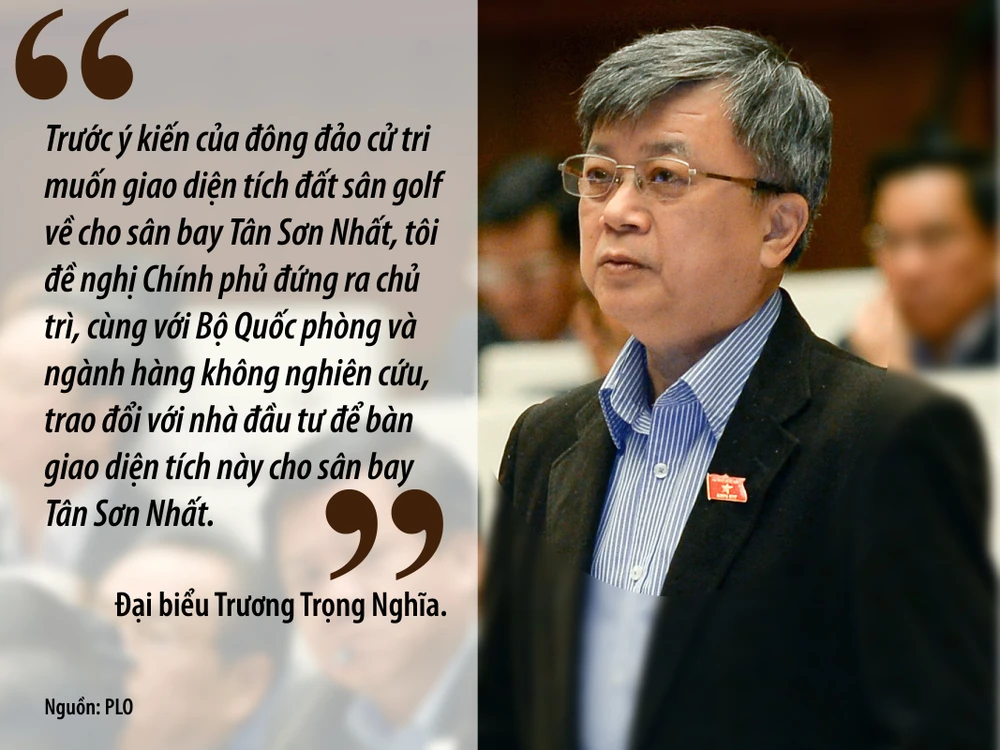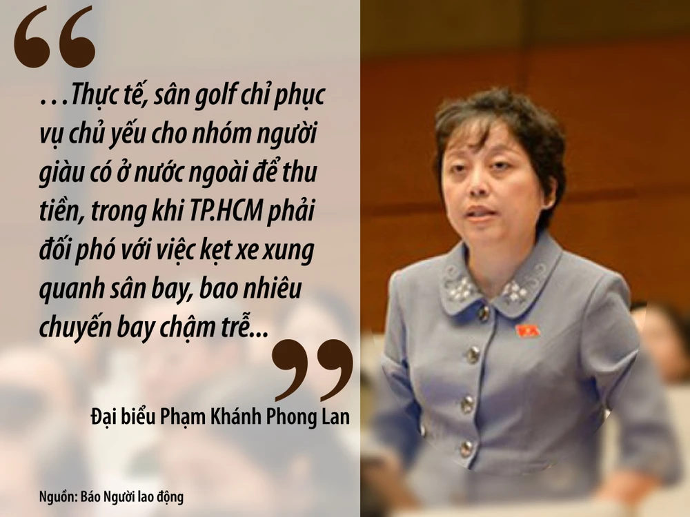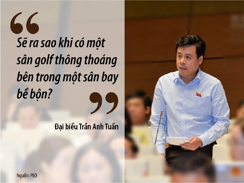 (PLO)- Nhiều đại biểu Quốc hội đã có những ý kiến, góp ý về việc xây sân golf rộng hàng trăm hécta trong sân bay Tân Sơn Nhất trong khi sân bay hiện tại đang bị quá tải nghiêm trọng.