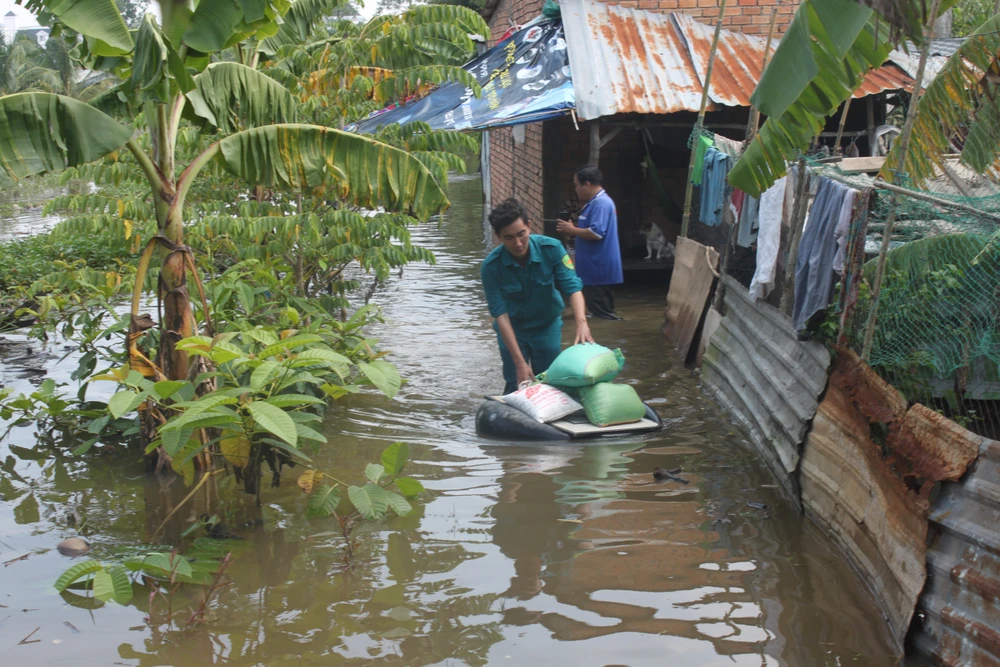 Rạng sáng 8-10, triều cường dâng cao đã làm vỡ một số đoạn bờ bao chống lũ ở khu vực 3, Cồn Khương thuộc phường Cái Khế, quận Ninh Kiều, TP Cần Thơ khiến nhà cửa, vườn cây ăn trái của hàng chục hộ dân bị ảnh hưởng.