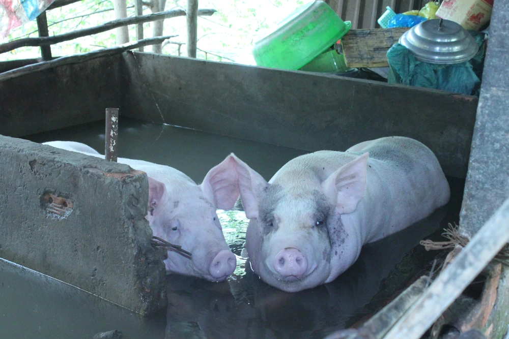 Nước ngập cao quá bụng đàn heo.