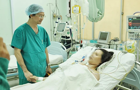 Bệnh nhân rất cần sự chia sẻ, động viên của BS. Trong ảnh: BS CKII Nguyễn Thái An, Trưởng khoa Phẫu thuật - Hồi sức tim, BV Chợ Rẫy, thăm hỏi một bệnh nhân. Ảnh: TÙNG SƠN