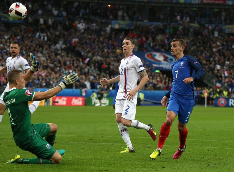 Antoine Griezmann lập kỷ lục khi ghi bàn vào lưới Iceland.