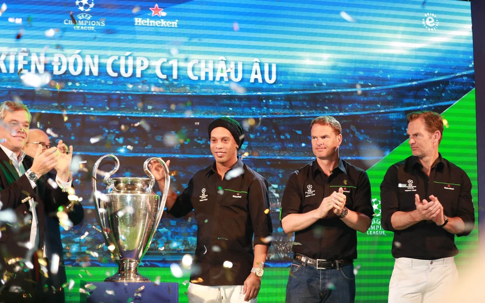 Mới một ngày đến Việt Nam nhưng đêm 12-4, Ronald và người anh em sinh đôi Frank cùng với Ronaldinho đã có một đêm thức trắng để xem ba trận tứ kết Champions League. Sáng nay các cựu ngôi sao này đã trả lời báo chí và người hâm mộ đang quan tâm giải đấu mà họ làm đại sứ.