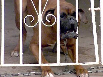 Con chó boxer đã thò mõm ra ngoài song sắt cửa, lôi đứa bé vào bên trong rồi tấn công. Ảnh: AP