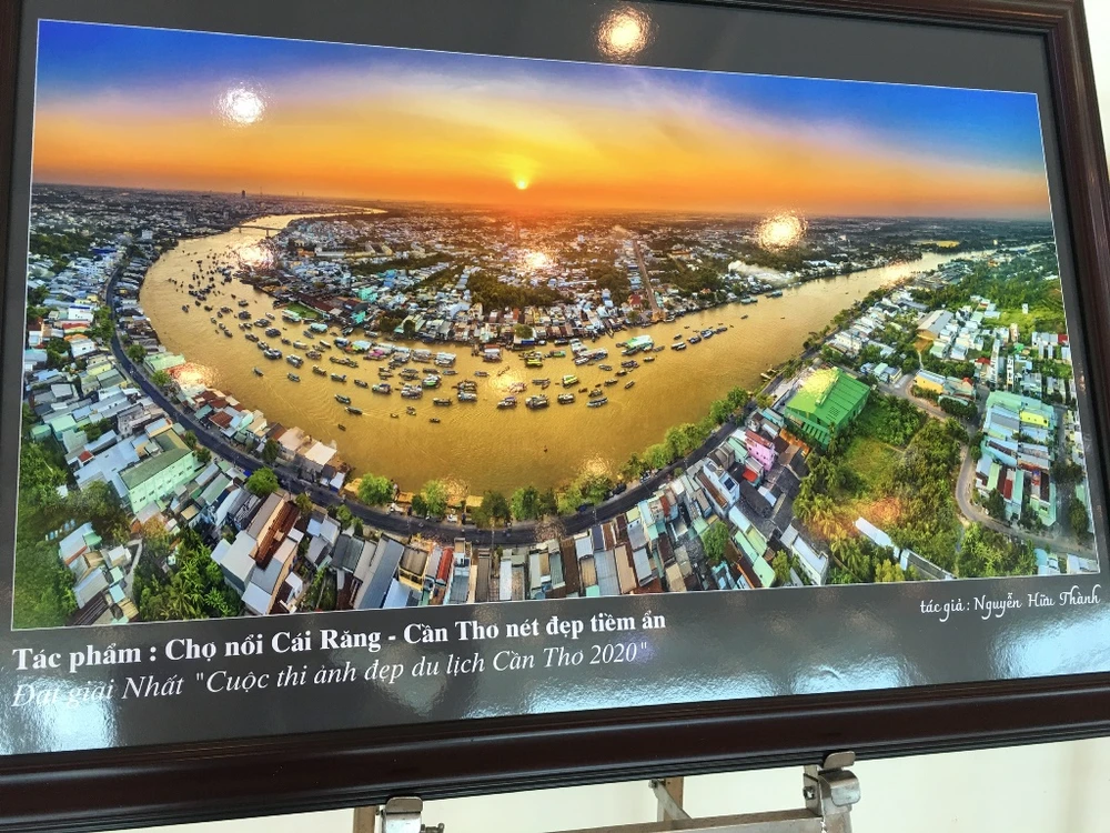Tác phẩm Chợ nổi Cái Răng - Cần Thơ nét đẹp tiềm ẩn của tác giả Nguyễn Hữu Thành đạt giải nhất cuộc thi ảnh đẹp du lịch Cần Thơ 2020. Ảnh trưng bày tại hội nghị chiều 27-1. Ảnh: NN
