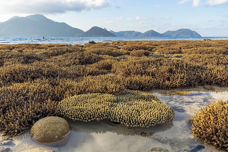 Rạn san hô nổi khi thủy triều rút tại khu vực Hòn Tre lớn, Côn Đảo. Ảnh: Mạnh Cường