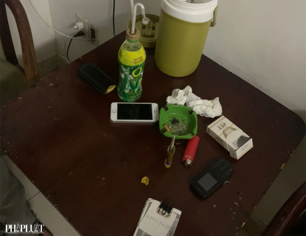 Trong phòng la liệt dụng cụ sử dụng ma túy và đầu thuốc tàn. Cả ba đều dương tính với ma túy.