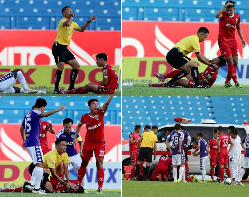 Hình ảnh trên rất hiếm trong làng bóng Việt nhưng với bóng đá quốc tế thì đã có nhiều sự cố cầu thủ bị chấn thương và vô thức cắn lưỡi của mình để lại những hậu quả đáng tiếc, thậm chí là tử vong.