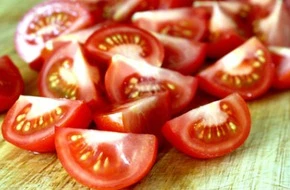 Hạt quả cà chua chín tự nhiên thường màu trắng vàng chứ không xanh. Ảnh: Internet
