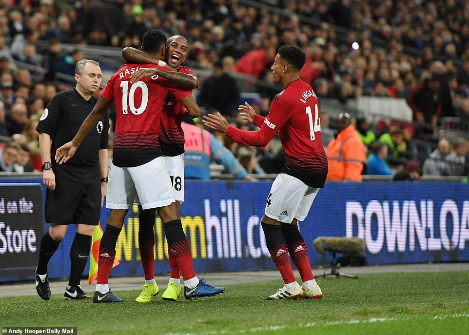Ở hiệp 1, hai đội chơi ăn miếng trả miếng nhau bằng màn đôi công rất hấp dẫn. Mãi đến phút 44, tận dụng sai lầm mất bóng của Tottenham, MU thực hiện đường phản công cực nhanh, Pogba kiến tạo cho Rashford băng xuống đối mặt thủ thành Lloris sút bóng chéo góc ghi bàn mở tỉ số 1-0 cho MU.