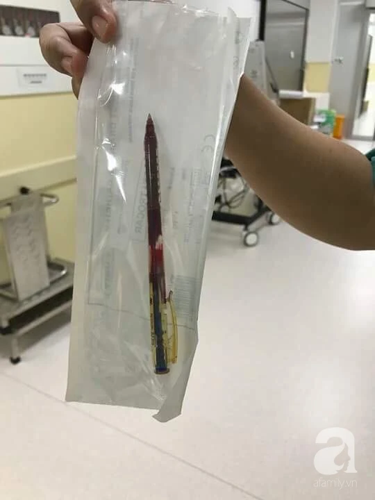 Theo người nhà nạn nhân, 18 giờ cùng ngày nhập viện, bé gái đòi ba cho bút bi chơi, sau đó chạy bị ngã và bị bút đâm xuyên ngực phải, rách màng phổi vào tận trung thất trên.