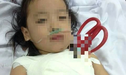 Bệnh nhi được đưa đến bệnh viện địa phương cấp cứu trong tình trạng khó thở, có dấu hiệu lơ mơ. Sau đó bé được chuyển ngay lên Bệnh viện Nhi Đồng Thành phố.