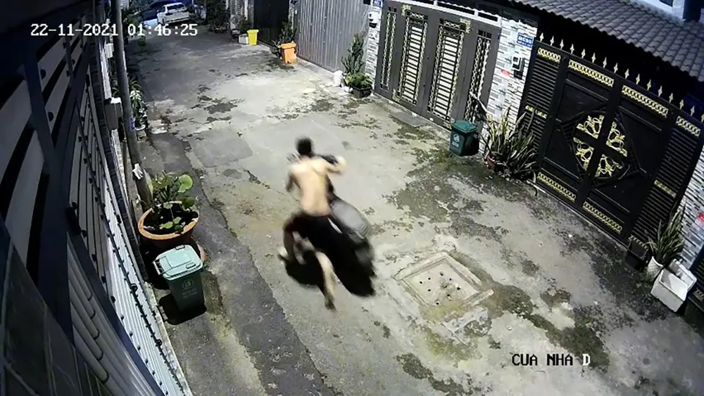 Theo ông H. vụ việc xảy ra vào 1 giờ 25 phút ngày 22-11. Diễn biến được camera an ninh ghi lại.