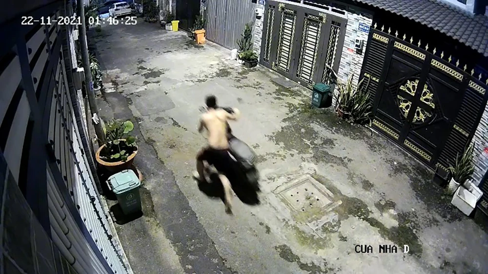 Vụ trộm xe máy xảy ra tại con hẻm trên đường Quốc lộ 1, quận Bình Tân, TP.HCM. Ảnh chụp từ clip