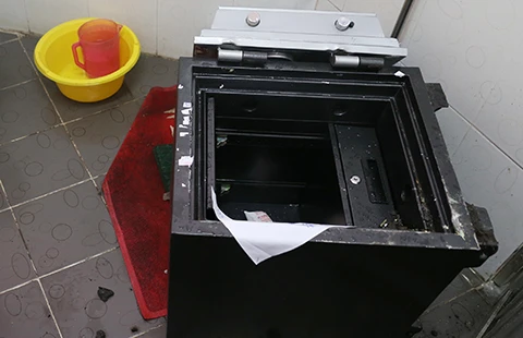 Chiếc két sắt bị trộm phá lấy tiền. Ảnh: VH