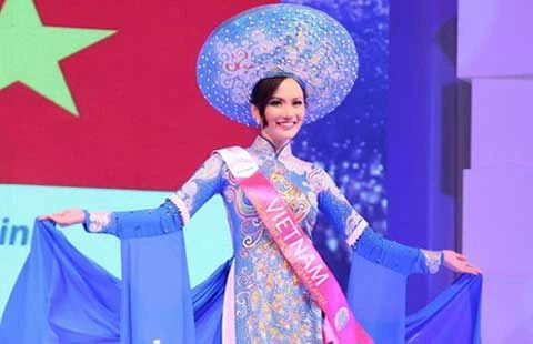 Người mẫu Diệu Linh giành giải trang phục dân tộc đẹp nhất trong cuộc thi Hoa hậu Du lịch quốc tế 2014 tại Malaysia. Ảnh: H.BÌNH