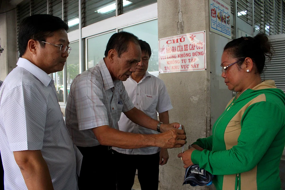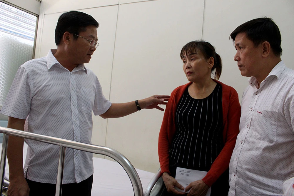 Ông Nguyễn Văn Đức – Phó Bí thư Thường trực Quận ủy, ông Lê Văn Thinh – Chủ tịch UBND quận, ông Đỗ Đình Thiện – Phó Chủ tịch UBND quận Bình Tân đã đến BV Chợ Rẫy thăm hỏi, động viên hai chiến sĩ Bùi Văn Dũng và Phan Tấn Quốc.