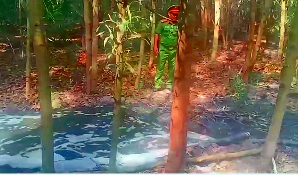 Tại đây lực lượng chức năng phát hiện công ty này dùng máy bơm công suất lớn bơm nước thải từ hồ điều hòa của trang trại (chưa qua hệ thống xử lý nước thải) ra vườn bạch đàn thông qua một đường ống dài khoảng 1 km, đường kính 60 mm, xuyên qua tường rào.