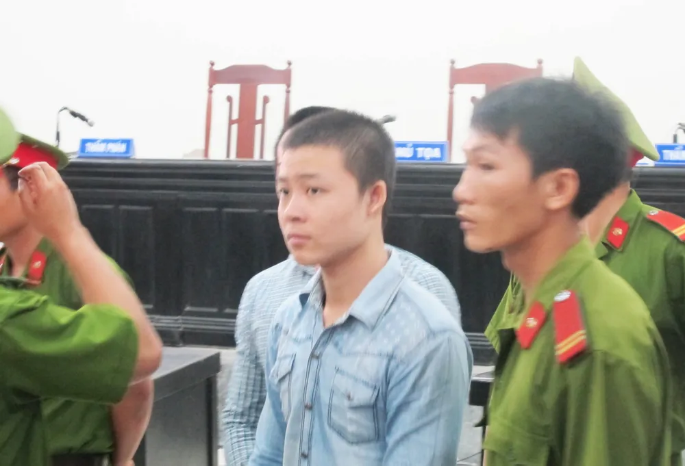 Lê Tấn Khỏe (hàng đầu) và Lê Minh Phát tại phiên tòa phúc thẩm lần 1. Ảnh: TẤN LỘC