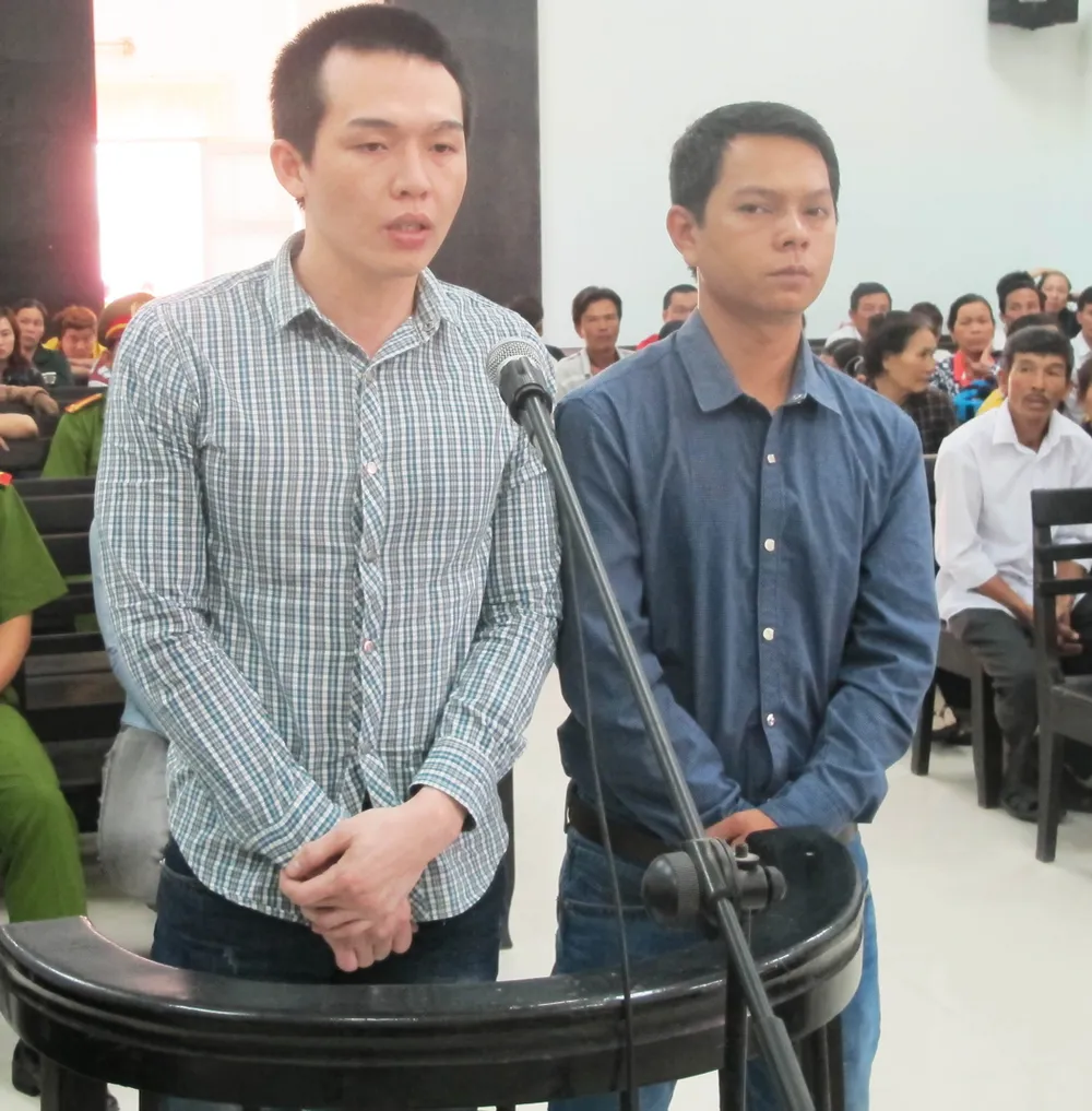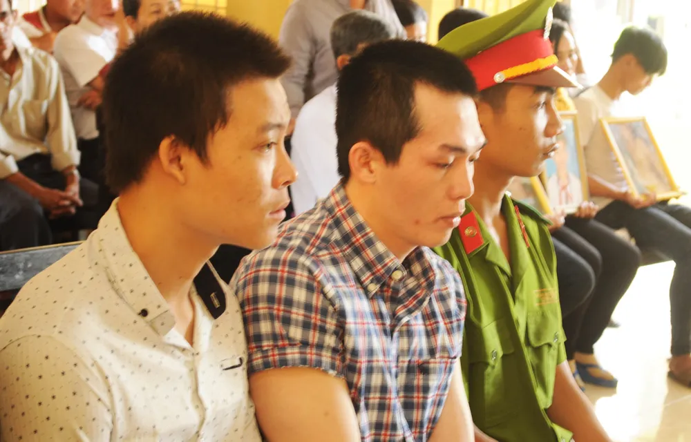 Hai bị cáo cựu công an viên bị đề nghị kháng nghị giám đốc thẩm xử tội bắt giữ người trái pháp luật. Ảnh: TẤN LỘC