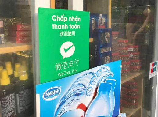 Một cơ sở kinh doanh ở TP Nha Trang công khai thông báo thanh toán bằng hình thức WeChat Pay. Ảnh: VN