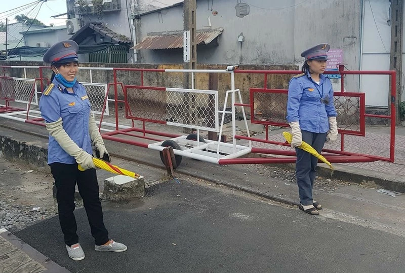 Hai nhân viên đường sắt là chị Nguyễn Thị Minh và Đỗ thị Lan lao tới kịp thời cứu cụ bà thoát chết trong gang tấc.