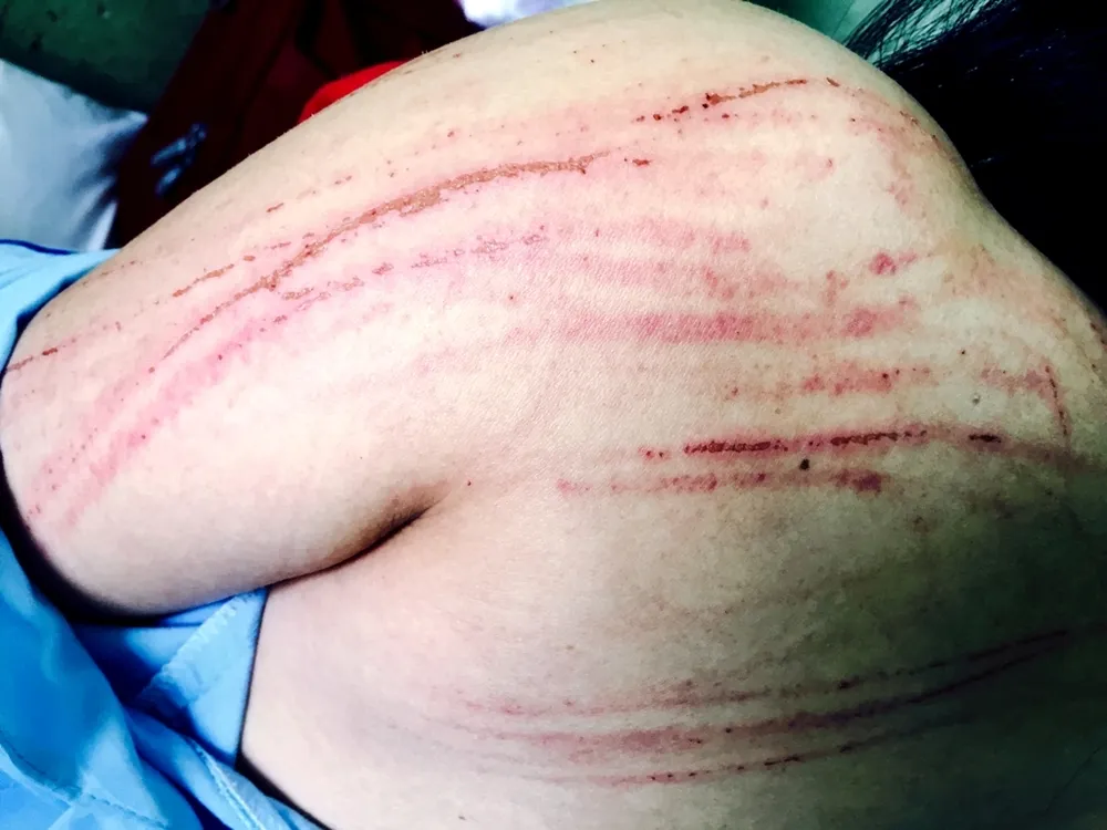 Các vết tích trên người LS Tiết sau khi bị hành hung.