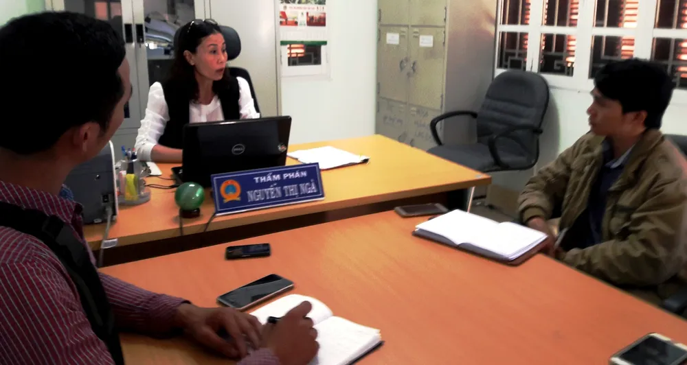 Thẩm phán Nguyễn Thị Ngà, chủ tọa phiên tòa (người ngồi giữa).