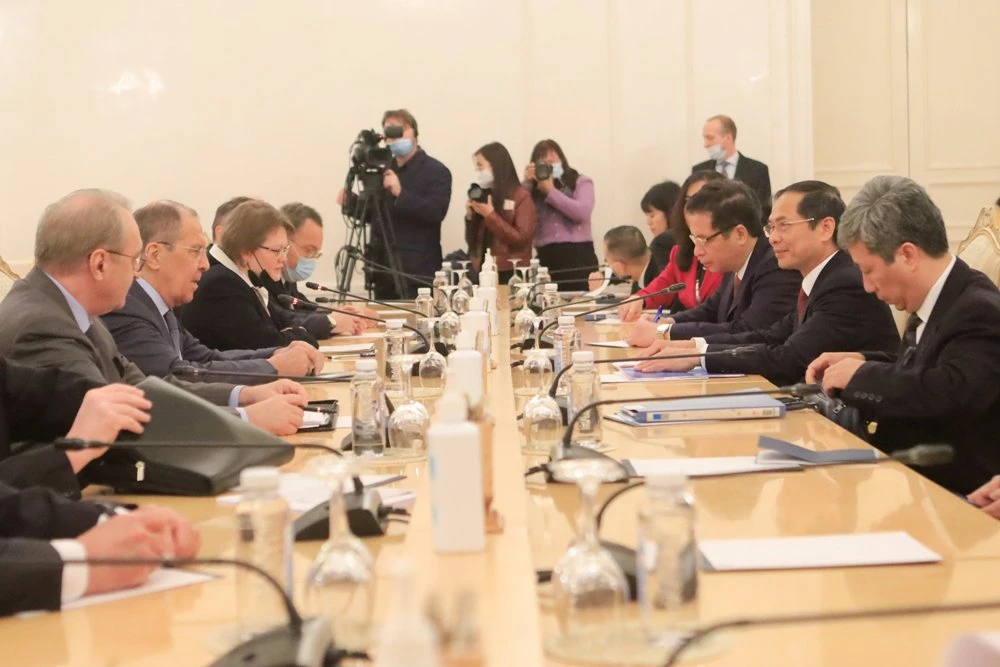 Bộ trưởng Lavrov đánh giá cao chuyến thăm song phương chính thức đầu tiên của Bộ trưởng Bùi Thanh Sơn trên cương vị mới đến Liên bang Nga, cũng như quan hệ hữu nghị truyền thống đặc biệt Việt – Nga, khẳng định Việt Nam là đối tác rất quan trọng trong chính sách đối ngoại của Nga cũng như ở khu vực châu Á – Thái Bình Dương.