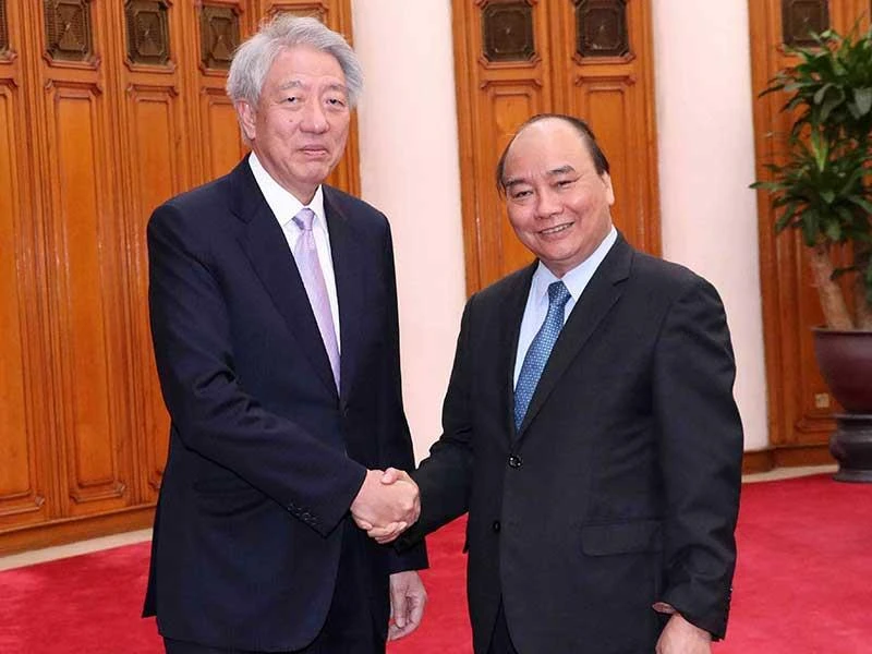 Thủ tướng Nguyễn Xuân Phúc tiếp Phó Thủ tướng, Bộ trưởng Điều phối an ninh quốc gia Singapore Tiêu Chí Hiền. Ảnh: TTXVN