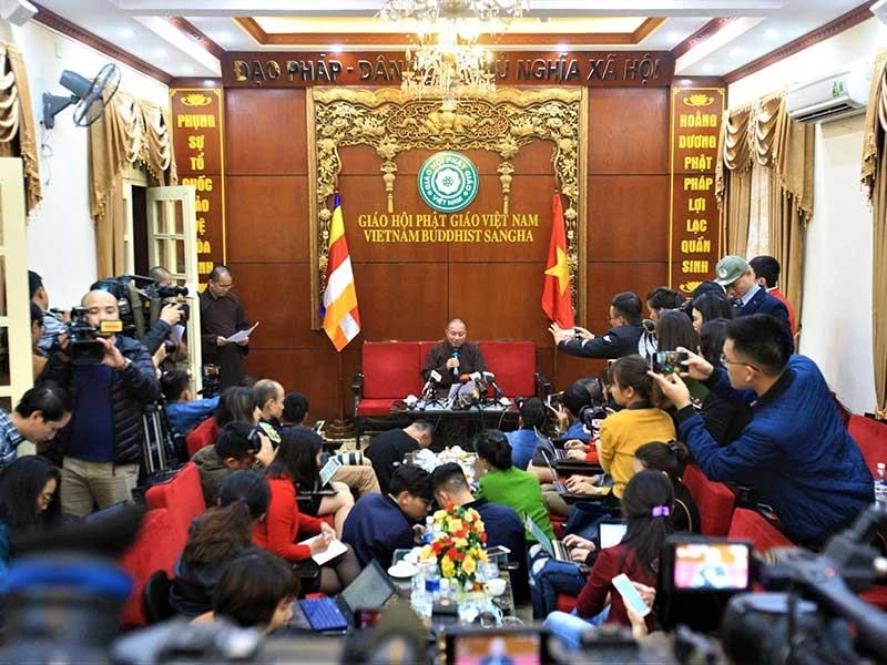 Đông đảo phóng viên đã có mặt từ đầu giờ chiều chờ đợi một cuộc họp báo sẽ diễn ra. Đến cuối giờ chiều, cuộc họp kết thúc, Hội đồng Trị sự Giáo hội Phật giáo chỉ ra thông cáo gửi cho báo chí.