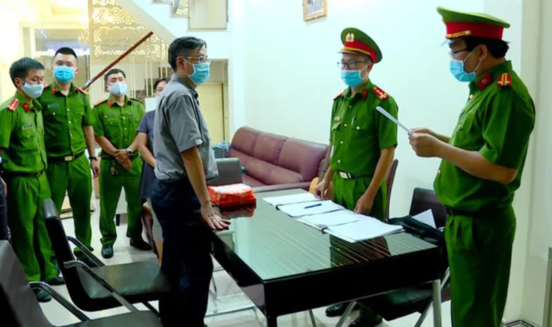 Cơ quan CSĐT Công an tỉnh Khánh Hòa công bố lệnh tạm giam đối với ông Lê Đức Vinh, cựu Chủ tịch UBND tỉnh Khánh Hòa. Ảnh: CÔNG AN KHÁNH HÒA