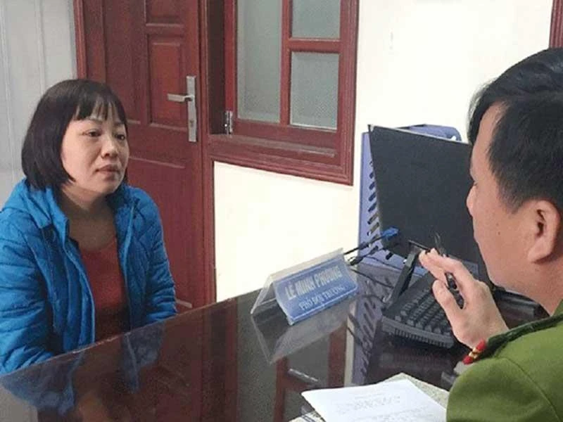 Bà Đào Thị Thanh Bình tại cơ quan công an. Ảnh: CTV