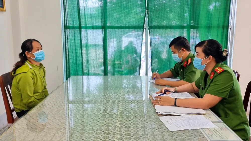 Bị can Nguyễn Thị Hằng tại cơ quan công an. Ảnh: VĂN VŨ