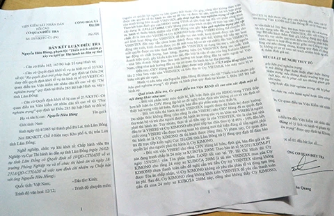 Bản kết luận điều tra của CQĐT VKSND Tối cao tại miền Trung - Tây Nguyên. Ảnh: TT