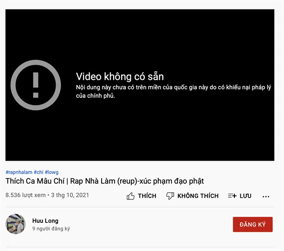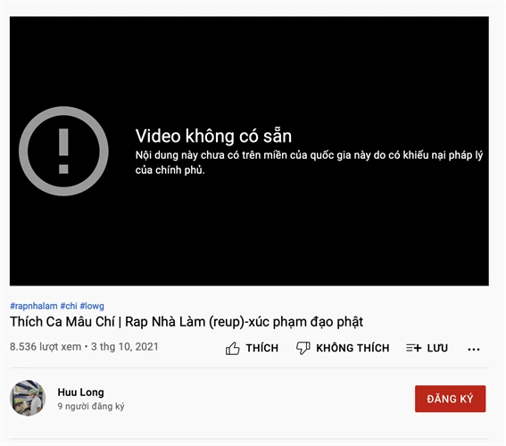 Cục Nghệ thuật biểu diễn vừa có văn bản số 491/NTBD-QLBD&BGAGH gửi Thanh tra Bộ VH-TT&DL về việc xử lý hành vi lưu hành bản ghi hình trên mạng xã hội. Nội dung văn bản đề cập, Cục Nghệ thuật biểu diễn nhận được thông tin phản ánh về việc tài khoản youtube có tên Huu Long đăng tải video bài nhạc rap Thích Ca Mâu Chí . Đây là nội dung đã được kênh youtube Rap Nhà Làm đăng tải trước đó.