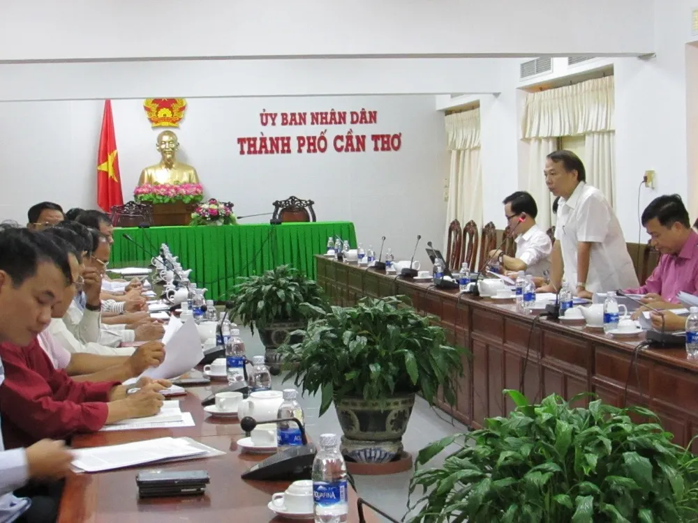 Quang cảnh buổi làm việc của đoàn kiểm tra của Tổng Liên đoàn Lao động Việt Nam với UBND TP Cần Thơ ngày 4-10. Ảnh: NN
